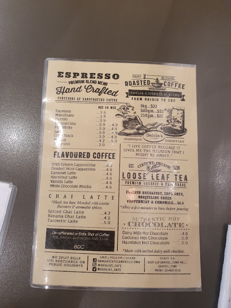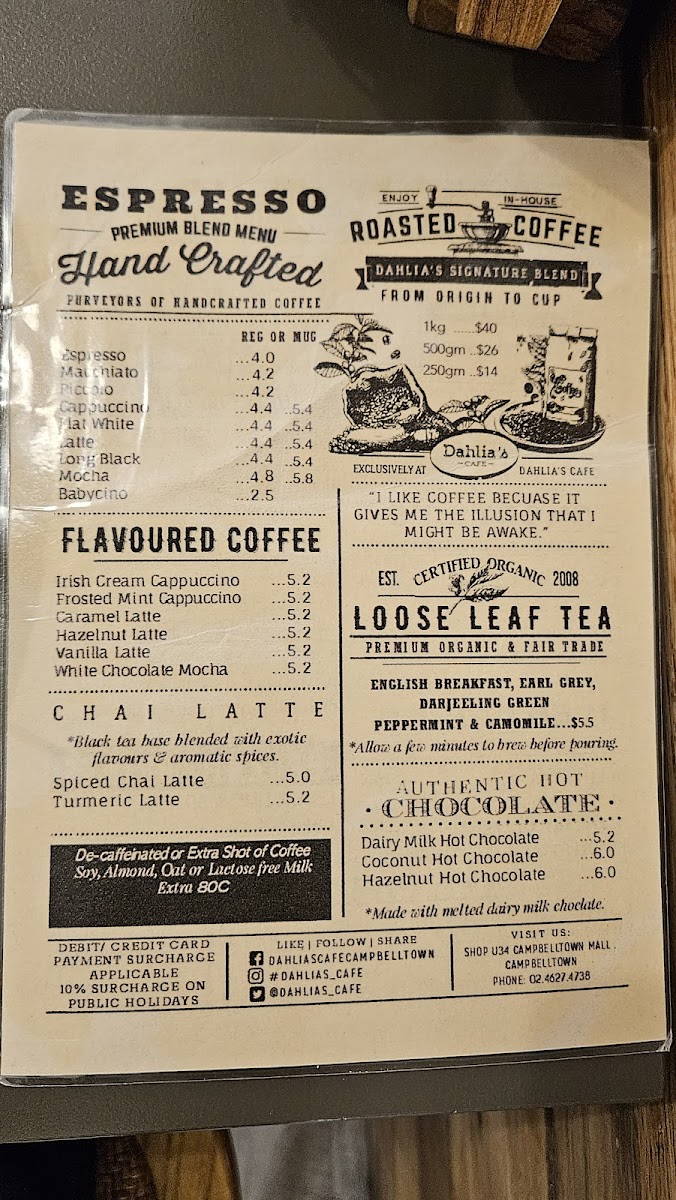 If you're in the mood for a cozy and delicious meal, the Dahlias Cafe Menu offers a delightful range of options that will satisfy any craving. Located in the heart of Campbelltown Mall on Queen St, this cafe is the perfect spot to enjoy a warm cup of coffee or indulge in some freshly prepared dishes. Whether you're stopping by for a quick bite or enjoying a leisurely meal with friends, you'll find a variety of choices from savory breakfast plates to flavorful lunch specials. Each dish is crafted with care, using the finest ingredients to create a memorable dining experience. The welcoming atmosphere, paired with the cafe's mouthwatering menu, ensures that every visit is a treat for the senses.